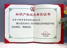 喜訊!熱烈祝賀七特麗再度榮獲“北京市知識產權試點單位”證書
